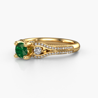 This 14 Carat gold ring is called Nikita and is set with 5 mm emerald. An extraordinary gold vintage ring. One that will surely make the love of your life shine like a diamond! That is what we hope to achieve. This vintage engagement ring is set with exquisite emerald. Whichever gemstone you choose from our selection, is up to you. The gemstone is selected with great care because we believe your tasteful engagement ring must be adorned with nothing but the most beautiful gemstone. Wouldn't you agree? Our expert goldsmith will design your ring in our own crafting studio, where the emerald will be set with great precision. The ring will then be polished till it shines perfectly. Nothing but the best for the love of your life! This jewel is made just for you by our master goldsmiths in our own studio.After receiving your order, our goldsmiths will start the creative process of making your Nikita engagement ring. We don't keep stock. This is advantageous because these costs will not be passed on to you. Therefore, we can offer jewellery at exceptionally low prices.Do you have a specific ring in mind? One you came across somewhere. Please feel free to tell us your wishes and we will turn your design into a unique engagement ring. You can follow the development of your ring design because we use 3D drawings. This gives you a realistic preview of your design. We will gladly send you a non-binding offer, based on a fair price/ quality ratio. It will amaze you.To make it easier for you, we offer a 30 day return policy. Check our terms and conditions.