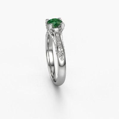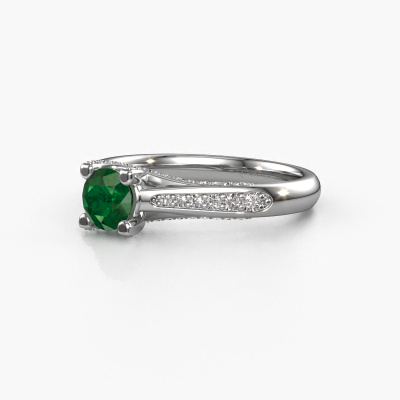 This platinum ring is called Mia 3 and is set with 5 mm emerald. This exclusive platinum pavé solitaire engagement ring is a true work of art! The ornaments are crafted with a lot of patience and great passion. In order to create this ring with great precision, this craft requires a keen eye and skilful hand. A challenge which ignites a fire in our expert goldsmith. The exquisite emerald are set in a special way so they stand out even more. This gives the ring an even more glamorous appearance. The shiny engagement ring is actually unique on its own because of the gemstones which we carefully select especially for this ring. On top of that you select the precious metals which will be used to create a unique ring for the most extraordinary woman in your life! This jewel is unique in every way! Simply customize to your likingAre you on a budget? Please feel free to contact us, so we can go discuss your options. We offer our engagement rings at guaranteed best price, because we make them to order. You won't find such a price anywhere else!Our team adds new designs to our online collection daily. Our designers and goldsmiths work together in creating the best design. We strive to offer a diverse collection of jewels. Perhaps you have a specific jewel design in mind. One you came across somewhere. Please contact us for a free consultation. We will make you an offer, based on a fair price/ quality ratio, that will baffle you.To make it easier for you, we offer a 30 day return policy. Check our terms and conditions.