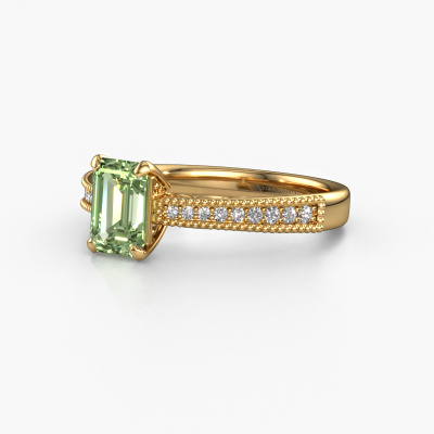 This 14 Carat gold ring is called Shonta RAD and is set with 7x5 mm green lab grown diamond. Is your girlfriend hooked on vintage? Then this gold pearl designs engagement ring will surely match her style perfectly. A trendy ring with just a hint of Celtic adornment. A truly stunning, romantic design! Especially when you customize your ring to your own liking. This Celtic pavé solitaire engagement ring is set with stunning green lab grown diamonds. As you can see, you are the boss in selecting a gemstone which matches the style of your girlfriend best. Each gemstone is carefully selected by our merchants whom are spread throughout the world. Nothing but the best gems for our expert goldsmith. After all, it is his crowning glory! Each jewel is made with passion and love by one of our master goldsmiths.Are you on a budget? Please feel free to contact us, so we can go discuss your options. We offer our engagement rings at guaranteed best price, because we make them to order. You won't find such a price anywhere else!Different styles of new rings are made daily by our team. Perhaps you have found a pavé solitaire engagement ring somewhere. One you would like to give to your loved one. Please feel free to share your thoughts and design with our jewel designers. We would love to turn your design into a Celtic engagement ring. You can follow the development of your ring design because we use very detailed 3D drawings. On top of that, you can order a dummy of the design. A dummy is a plastic ring, which can be shaped according your ring design. You can try it on and check if the engagement ring is up to standard. We will gladly send you a non-binding offer, based on a fair price/ quality ratio. The offer will baffle you, considering the quality of the ring and gemstones.To make it easier for you, we offer a 30 day return policy. Check our terms and conditions.