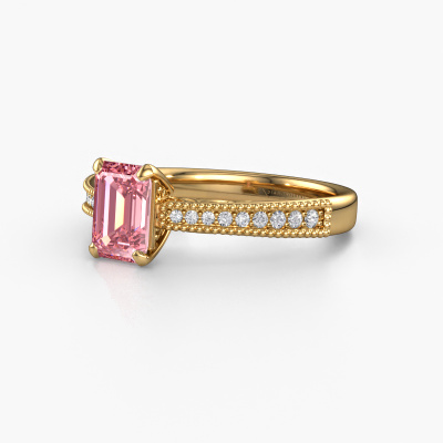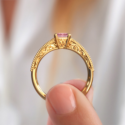 This 14 Carat gold ring is called Shonta RAD and is set with 7x5 mm pink lab grown diamond. Is your girlfriend hooked on vintage? Then this gold pearl designs engagement ring will surely match her style perfectly. A trendy ring with just a hint of Celtic adornment. A truly stunning, romantic design! Especially when you customize your ring to your own liking. This Celtic pavé solitaire engagement ring is set with stunning pink lab grown diamonds. As you can see, you are the boss in selecting a gemstone which matches the style of your girlfriend best. Each gemstone is carefully selected by our merchants whom are spread throughout the world. Nothing but the best gems for our expert goldsmith. After all, it is his crowning glory! Each jewel is made with passion and love by one of our master goldsmiths.Are you on a budget? Please feel free to contact us, so we can go discuss your options. We offer our engagement rings at guaranteed best price, because we make them to order. You won't find such a price anywhere else!Different styles of new rings are made daily by our team. Perhaps you have found a pavé solitaire engagement ring somewhere. One you would like to give to your loved one. Please feel free to share your thoughts and design with our jewel designers. We would love to turn your design into a Celtic engagement ring. You can follow the development of your ring design because we use very detailed 3D drawings. On top of that, you can order a dummy of the design. A dummy is a plastic ring, which can be shaped according your ring design. You can try it on and check if the engagement ring is up to standard. We will gladly send you a non-binding offer, based on a fair price/ quality ratio. The offer will baffle you, considering the quality of the ring and gemstones.To make it easier for you, we offer a 30 day return policy. Check our terms and conditions.