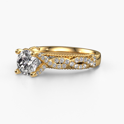 This 14 Carat gold ring is called Chantelle and is set with 1.399 crt diamond. Is your girlfriend hooked on vintage? Then this gold daring engagement ring will surely match her style perfectly. A trendy ring with just a hint of vintage adornment. A truly stunning, romantic design! Especially when you customize your ring to your own liking. This vintage pavé solitaire engagement ring is set with stunning diamonds. As you can see, you are the boss in selecting a gemstone which matches the style of your girlfriend best. Each gemstone is carefully selected by our merchants whom are spread throughout the world. Nothing but the best gems for our expert goldsmith. After all, it is his crowning glory! Each jewel is made by a team of passionate goldsmiths and jewel designers. This will make your crown jewel truly eye-catching.Are you on a budget? Please feel free to contact us, so we can go discuss your options. We offer our engagement rings at guaranteed best price, because we make them to order. You won't find such a price anywhere else!Our designers and goldsmiths work together each day, creating new jewels. Perhaps you have found a nice vintage engagement ring somewhere, which can be used to customize your unique ring. Please feel free to contact us. We will make you an offer, based on a fair price/ quality ratio, which will amaze you.To make it easier for you, we offer a 30 day return policy. Check our terms and conditions.