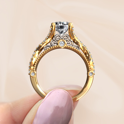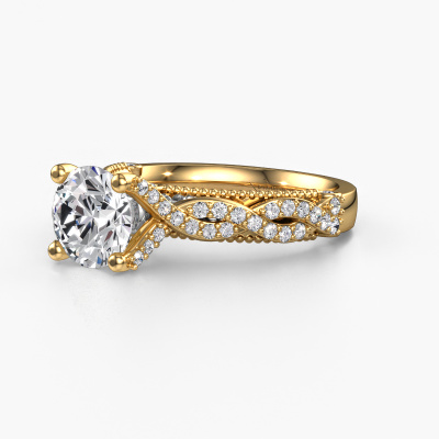 This 14 Carat gold ring is called Chantelle and is set with 1.944 crt lab grown diamond. Is your girlfriend hooked on vintage? Then this gold daring engagement ring will surely match her style perfectly. A trendy ring with just a hint of vintage adornment. A truly stunning, romantic design! Especially when you customize your ring to your own liking. This vintage pavé solitaire engagement ring is set with stunning lab-grown diamonds. As you can see, you are the boss in selecting a gemstone which matches the style of your girlfriend best. Each gemstone is carefully selected by our merchants whom are spread throughout the world. Nothing but the best gems for our expert goldsmith. After all, it is his crowning glory! Each jewel is made by a team of passionate goldsmiths and jewel designers. This will make your crown jewel truly eye-catching.Are you on a budget? Please feel free to contact us, so we can go discuss your options. We offer our engagement rings at guaranteed best price, because we make them to order. You won't find such a price anywhere else!Our designers and goldsmiths work together each day, creating new jewels. Perhaps you have found a nice vintage engagement ring somewhere, which can be used to customize your unique ring. Please feel free to contact us. We will make you an offer, based on a fair price/ quality ratio, which will amaze you.To make it easier for you, we offer a 30 day return policy. Check our terms and conditions.