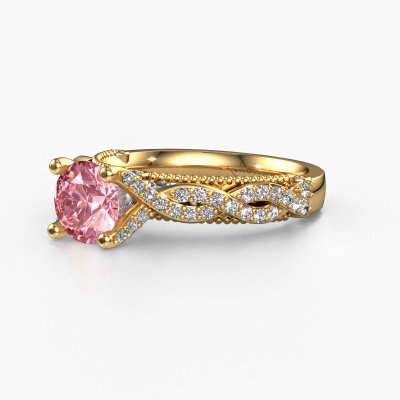 This 14 Carat gold ring is called Chantelle and is set with 6.5 mm pink lab grown diamond. Is your girlfriend hooked on vintage? Then this gold daring engagement ring will surely match her style perfectly. A trendy ring with just a hint of vintage adornment. A truly stunning, romantic design! Especially when you customize your ring to your own liking. This vintage pavé solitaire engagement ring is set with stunning pink lab grown diamonds. As you can see, you are the boss in selecting a gemstone which matches the style of your girlfriend best. Each gemstone is carefully selected by our merchants whom are spread throughout the world. Nothing but the best gems for our expert goldsmith. After all, it is his crowning glory! Each jewel is made by a team of passionate goldsmiths and jewel designers. This will make your crown jewel truly eye-catching.Are you on a budget? Please feel free to contact us, so we can go discuss your options. We offer our engagement rings at guaranteed best price, because we make them to order. You won't find such a price anywhere else!Our designers and goldsmiths work together each day, creating new jewels. Perhaps you have found a nice vintage engagement ring somewhere, which can be used to customize your unique ring. Please feel free to contact us. We will make you an offer, based on a fair price/ quality ratio, which will amaze you.To make it easier for you, we offer a 30 day return policy. Check our terms and conditions.