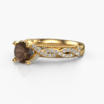 This 14 Carat gold ring is called Chantelle and is set with 6.5 mm smokey quartz. Is your girlfriend hooked on vintage? Then this gold daring engagement ring will surely match her style perfectly. A trendy ring with just a hint of vintage adornment. A truly stunning, romantic design! Especially when you customize your ring to your own liking. This vintage pavé solitaire engagement ring is set with stunning smokey quartz. As you can see, you are the boss in selecting a gemstone which matches the style of your girlfriend best. Each gemstone is carefully selected by our merchants whom are spread throughout the world. Nothing but the best gems for our expert goldsmith. After all, it is his crowning glory! Each jewel is made by a team of passionate goldsmiths and jewel designers. This will make your crown jewel truly eye-catching.Are you on a budget? Please feel free to contact us, so we can go discuss your options. We offer our engagement rings at guaranteed best price, because we make them to order. You won't find such a price anywhere else!Our designers and goldsmiths work together each day, creating new jewels. Perhaps you have found a nice vintage engagement ring somewhere, which can be used to customize your unique ring. Please feel free to contact us. We will make you an offer, based on a fair price/ quality ratio, which will amaze you.To make it easier for you, we offer a 30 day return policy. Check our terms and conditions.
