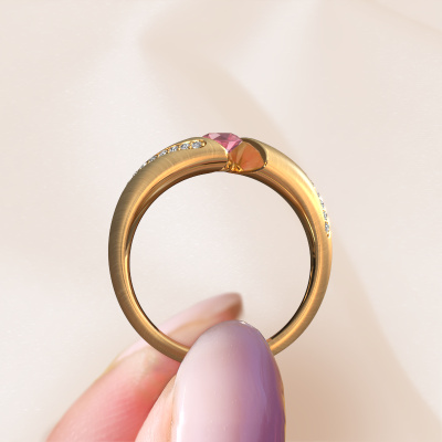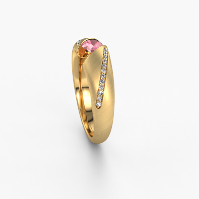 This 14 Carat gold ring is called Hojalien 2 and is set with tourmaline pink. Do you keep up with the latest fashion trends? Do you want a unique engagement ring that matches your lifestyle? This graceful engagement ring is an extraordinary ring which can be custom-made to fit your or her personal style. This modern gold engagement ring is set with tourmaline pink. Our tourmaline pink are carefully selected for this specific ring in order to create the best effect. Our expert goldsmith will create your ring in our own artisan studio where the tourmaline pink will be set with great care. The ring will then be polished to perfection. Nothing but the best for the love of your life! This jewel is made by a team of passionate goldsmiths and jewel designers. This will make your crown jewel truly eye-catching.Because we design and deliver our own rings, we can offer you a engagement ring at a price you won't find anywhere else. A ring is made to order, which helps prevent excess supplies, so we can make you a great price offer. We understand it feels risky, buying your engagement ring online, but we will gladly assist in the designing process, taking your budget into consideration.Our team adds new designs to our online collection daily. Our designers and goldsmiths work together in creating the best design. We strive to offer a diverse collection of jewels. Perhaps you have a specific jewel design in mind. One you came across somewhere. Please contact us for a free consultation. We will make you an offer, based on a fair price/ quality ratio, that will baffle you.To make it easier for you, we offer a 30 day return policy. Check our terms and conditions.