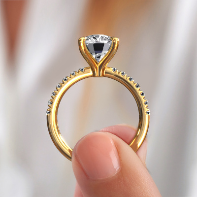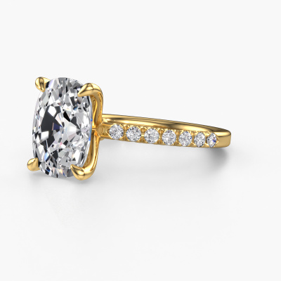 The ring shown above is called the Crystal CSH 2, we call this a solitaire ring because it contains a single gemstone. The engagement ring is made in 14 Carat gold and has a cushion rectangle lab grown diamond of 4.00 crt. This exclusive gold solitaire ring with exquisite cushion rectangle lab grown diamond is a beautiful engagement ring. The open prong setting allows light to strike the gemstone from various angles. The ring also stands out because of the high positioning of the gemstone. Because diamonds symbolize true love and purity, they make the perfect gift for the love of your life. The symbol of eternal love is the centerpiece of this solitaire ring. Like a diamond, all other types of precious metal have their own attributed symbolic meaning. You can compile the pavé solitaire engagement ring yourself in various precious metal combinations. This one has the combination of 14 Carat gold with gold. Each piece of jewelry is made with passion and love by one of our master goldsmiths.After receiving your order, our goldsmiths will passionately start the creative process of making your engagement ring in our own studio. Because we don't have a big stockpile, these costs will not be passed on to you. Our pricing is proof of that! We offer top quality jewels at lowest price, guaranteed.Our designers and goldsmiths work together each day, creating new jewels. Perhaps you have found a nice exclusive engagement ring somewhere, which can be used to customize your unique ring. Please feel free to contact us. We will make you an offer, based on a fair price/ quality ratio, which will amaze you.To make it easier for you, we offer a 30 day return policy. Check our terms and conditions.