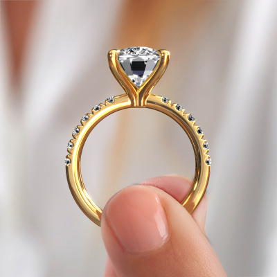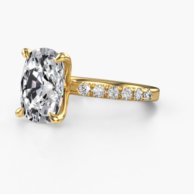 The ring shown above is called the Crystal CSH 2, we call this a solitaire ring because it contains a single gemstone. The engagement ring is made in 14 Carat gold and has a cushion rectangle lab grown diamond of 5.00 crt. This exclusive gold solitaire ring with exquisite cushion rectangle lab grown diamond is a beautiful engagement ring. The open prong setting allows light to strike the gemstone from various angles. The ring also stands out because of the high positioning of the gemstone. Because diamonds symbolize true love and purity, they make the perfect gift for the love of your life. The symbol of eternal love is the centerpiece of this solitaire ring. Like a diamond, all other types of precious metal have their own attributed symbolic meaning. You can compile the pavé solitaire engagement ring yourself in various precious metal combinations. This one has the combination of 14 Carat gold with gold. Each piece of jewelry is made with passion and love by one of our master goldsmiths.After receiving your order, our goldsmiths will passionately start the creative process of making your engagement ring in our own studio. Because we don't have a big stockpile, these costs will not be passed on to you. Our pricing is proof of that! We offer top quality jewels at lowest price, guaranteed.Our designers and goldsmiths work together each day, creating new jewels. Perhaps you have found a nice exclusive engagement ring somewhere, which can be used to customize your unique ring. Please feel free to contact us. We will make you an offer, based on a fair price/ quality ratio, which will amaze you.To make it easier for you, we offer a 30 day return policy. Check our terms and conditions.