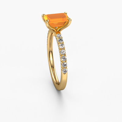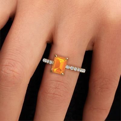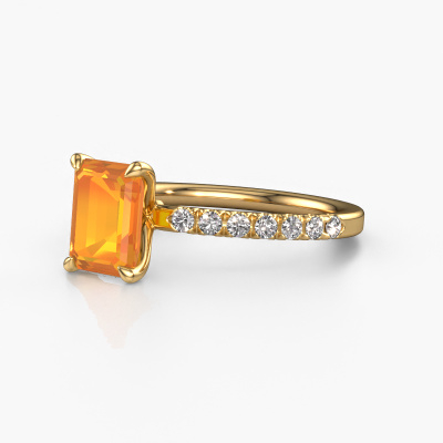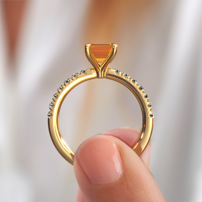 The ring shown above is called the Crystal EME 2, we call this a solitaire ring because it contains a single gemstone. The engagement ring is made in 14 Carat gold and has a emerald cut citrin of 8x6 mm. This exclusive gold solitaire ring with exquisite emerald cut citrin is a beautiful engagement ring. The open prong setting allows light to strike the gemstone from various angles. The ring also stands out because of the high positioning of the gemstone. Because diamonds symbolize true love and purity, they make the perfect gift for the love of your life. The symbol of eternal love is the centerpiece of this solitaire ring. Like a diamond, all other types of precious metal have their own attributed symbolic meaning. You can compile the pavé solitaire engagement ring yourself in various precious metal combinations. This one has the combination of 14 Carat gold with gold. Each piece of jewelry is made just for you by our master goldsmiths in our own studio.By using a combination of the latest modern techniques, combined with ancient crafting, we can make all our engagement rings in our own studio. Each jewel is made to order. This is advantageous because we can offer you a price you won't find anywhere else.Our team adds new designs to our online collection daily. Our designers and goldsmiths work together in creating the best design. We strive to offer a diverse collection of jewels. Perhaps you have a specific jewel design in mind. One you came across somewhere. Please contact us for a free consultation. We will make you an offer, based on a fair price/ quality ratio, that will baffle you.To make it easier for you, we offer a 30 day return policy. Check our terms and conditions.