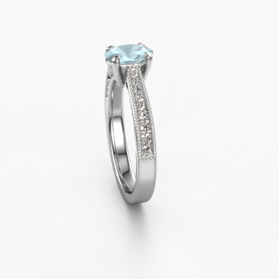 This platinum ring is called Shonta OVL and is set with 7x5 mm aquamarine. Is your girlfriend hooked on vintage? Then this platinum pearl designs engagement ring will surely match her style perfectly. A trendy ring with just a hint of fantasy adornment. A truly stunning, romantic design! Especially when you customize your ring to your own liking. This fantasy pavé solitaire engagement ring is set with stunning aquamarine. As you can see, you are the boss in selecting a gemstone which matches the style of your girlfriend best. Each gemstone is carefully selected by our merchants whom are spread throughout the world. Nothing but the best gems for our expert goldsmith. After all, it is his crowning glory! Each jewel is unique in every way! Simply customize to your liking,By using a combination of the latest modern techniques, combined with ancient crafting, we can make all our engagement rings in our own studio. Each jewel is made to order. This is advantageous because we can offer you a price you won't find anywhere else.Our team adds new designs to our online collection daily. Our designers and goldsmiths work together in creating the best design. We strive to offer a diverse collection of jewels. Perhaps you have a specific jewel design in mind. One you came across somewhere. Please contact us for a free consultation. We will make you an offer, based on a fair price/ quality ratio, that will baffle you.To make it easier for you, we offer a 30 day return policy. Check our terms and conditions.