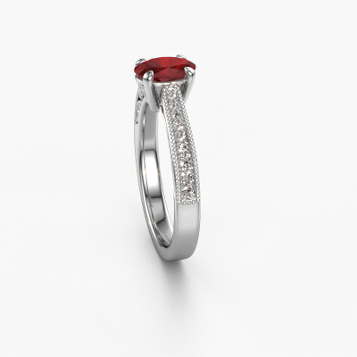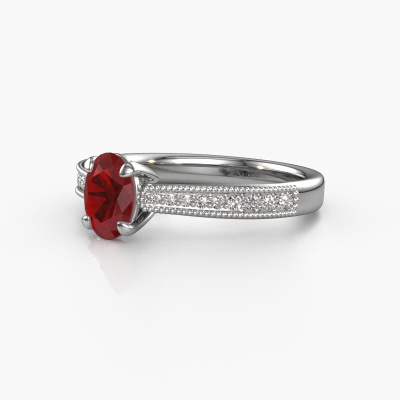 This platinum ring is called Shonta OVL and is set with 7x5 mm ruby. Is your girlfriend hooked on vintage? Then this platinum pearl designs engagement ring will surely match her style perfectly. A trendy ring with just a hint of fantasy adornment. A truly stunning, romantic design! Especially when you customize your ring to your own liking. This fantasy pavé solitaire engagement ring is set with stunning ruby. As you can see, you are the boss in selecting a gemstone which matches the style of your girlfriend best. Each gemstone is carefully selected by our merchants whom are spread throughout the world. Nothing but the best gems for our expert goldsmith. After all, it is his crowning glory! Each jewel is unique in every way! Simply customize to your liking,By using a combination of the latest modern techniques, combined with ancient crafting, we can make all our engagement rings in our own studio. Each jewel is made to order. This is advantageous because we can offer you a price you won't find anywhere else.Our team adds new designs to our online collection daily. Our designers and goldsmiths work together in creating the best design. We strive to offer a diverse collection of jewels. Perhaps you have a specific jewel design in mind. One you came across somewhere. Please contact us for a free consultation. We will make you an offer, based on a fair price/ quality ratio, that will baffle you.To make it easier for you, we offer a 30 day return policy. Check our terms and conditions.