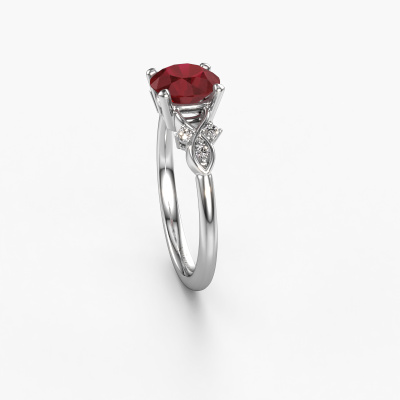 This platinum ring is called Azra RND and is set with ruby. Do you keep up with the latest fashion trends? Do you want a unique engagement ring that matches your lifestyle? This tasteful engagement ring is an extraordinary ring which can be custom-made to fit your or her personal style. This fantasy platinum engagement ring is set with ruby. Our ruby are carefully selected for this specific ring in order to create the best effect. Our expert goldsmith will create your ring in our own artisan studio where the ruby will be set with great care. The ring will then be polished to perfection. Nothing but the best for the love of your life! This jewel is made with passion and love by one of our master goldsmiths.By using our modern techniques, we can design and customize the finest quality jewels with the utmost care for you. Our engagement rings are always priced 30 percent lower than other jewellers. We make engagement rings to order so we don't have to maintain a large stock. If you have a certain budget, we are more than happy to advice you accordingly.Different styles of new rings are made daily by our team. Perhaps you have found a pavé solitaire engagement ring somewhere. One you would like to give to your loved one. Please feel free to share your thoughts and design with our jewel designers. We would love to turn your design into a fantasy engagement ring. You can follow the development of your ring design because we use very detailed 3D drawings. On top of that, you can order a dummy of the design. A dummy is a plastic ring, which can be shaped according your ring design. You can try it on and check if the engagement ring is up to standard. We will gladly send you a non-binding offer, based on a fair price/ quality ratio. The offer will baffle you, considering the quality of the ring and gemstones.To make it easier for you, we offer a 30 day return policy. Check our terms and conditions.