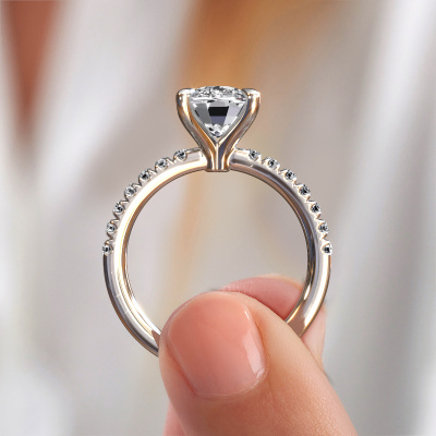 The ring shown above is called the Crystal CSH 2, we call this a solitaire ring because it contains a single gemstone. The engagement ring is made in platinum and has a cushion rectangle lab grown diamond of 3.00 crt. This exclusive platinum solitaire ring with exquisite cushion rectangle lab grown diamond is a beautiful engagement ring. The open prong setting allows light to strike the gemstone from various angles. The ring also stands out because of the high positioning of the gemstone. Because diamonds symbolize true love and purity, they make the perfect gift for the love of your life. The symbol of eternal love is the centerpiece of this solitaire ring. Like a diamond, all other types of precious metal have their own attributed symbolic meaning. You can compile the pavé solitaire engagement ring yourself in various precious metal combinations. This one has the combination of platinum with platinum. Each piece of jewelry is made with passion and love by one of our master goldsmiths.After receiving your order, our goldsmiths will passionately start the creative process of making your engagement ring in our own studio. Because we don't have a big stockpile, these costs will not be passed on to you. Our pricing is proof of that! We offer top quality jewels at lowest price, guaranteed.Our designers and goldsmiths work together each day, creating new jewels. Perhaps you have found a nice exclusive engagement ring somewhere, which can be used to customize your unique ring. Please feel free to contact us. We will make you an offer, based on a fair price/ quality ratio, which will amaze you.To make it easier for you, we offer a 30 day return policy. Check our terms and conditions.