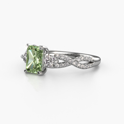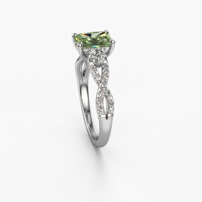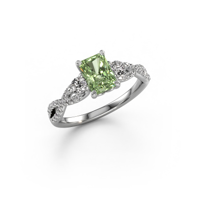 This platinum ring is called Marilou RAD and is set with 7x5 mm green lab grown diamond. For you, there is only one person in your life who stands out in a crowd. Only one that makes your heart skip a beat. A true gem! She, above all others, deserves a special gift. A unique customized jewel made in her honour. We believe this ring is perfect for your special moment. Each detail of this exclusive platinum pavé solitaire engagement ring is selected by hand, crafted and polished by our expert goldsmith in our own artisan studio. We strive to achieve the perfect design and composition of the ring, so it enhances the unique features of our green lab grown diamonds, and lets them shine even brighter. It takes a lot of precision to make but in the end it pays off because of the sheer beauty of the ring. And that is our main goal. It's what gets us excited. The great thing about our online tool is, that you can design your own jewellery into a unique, personalized piece. This unique twist engagement ring is created with the precious metal combination of platinum and platinum. But of course you are completely free to select other colours. Each piece of jewellery is created to add sparkle to your finger, each jewel is lovingly made by hand by our goldsmiths.By using our modern techniques, we can design and customize the finest quality jewels with the utmost care for you. Our engagement rings are always priced 30 percent lower than other jewellers. We make engagement rings to order so we don't have to maintain a large stock. If you have a certain budget, we are more than happy to advice you accordingly.Our team adds new designs to our online collection daily. Our designers and goldsmiths work together in creating the best design. We strive to offer a diverse collection of jewels. Perhaps you have a specific jewel design in mind. One you came across somewhere. Please contact us for a free consultation. We will make you an offer, based on a fair price/ quality ratio, that will baffle you.To make it easier for you, we offer a 30 day return policy. Check our terms and conditions.