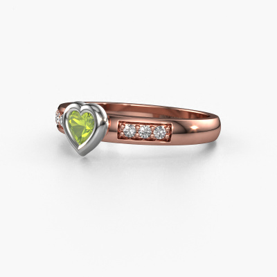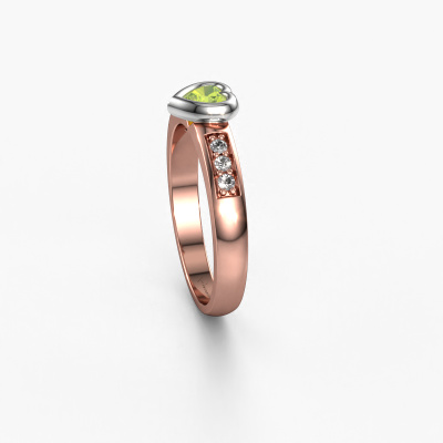 This 14 Carat rose gold ring is called Lieke Heart and is set with peridot. Do you keep up with the latest fashion trends? Do you want a unique engagement ring that matches your lifestyle? This hearts engagement ring is an extraordinary ring which can be custom-made to fit your or her personal style. This trendy rose gold engagement ring is set with peridot. Our peridot are carefully selected for this specific ring in order to create the best effect. Our expert goldsmith will create your ring in our own artisan studio where the peridot will be set with great care. The ring will then be polished to perfection. Nothing but the best for the love of your life! This jewel is unique in every way! Simply customize to your likingAfter receiving your order, our goldsmiths will passionately start the creative process of making your engagement ring in our own studio. Because we don't have a big stockpile, these costs will not be passed on to you. Our pricing is proof of that! We offer top quality jewels at lowest price, guaranteed.Different styles of new rings are made daily by our team. Perhaps you have found a pavé solitaire engagement ring somewhere. One you would like to give to your loved one. Please feel free to share your thoughts and design with our jewel designers. We would love to turn your design into a trendy engagement ring. You can follow the development of your ring design because we use very detailed 3D drawings. On top of that, you can order a dummy of the design. A dummy is a plastic ring, which can be shaped according your ring design. You can try it on and check if the engagement ring is up to standard. We will gladly send you a non-binding offer, based on a fair price/ quality ratio. The offer will baffle you, considering the quality of the ring and gemstones.To make it easier for you, we offer a 30 day return policy. Check our terms and conditions.