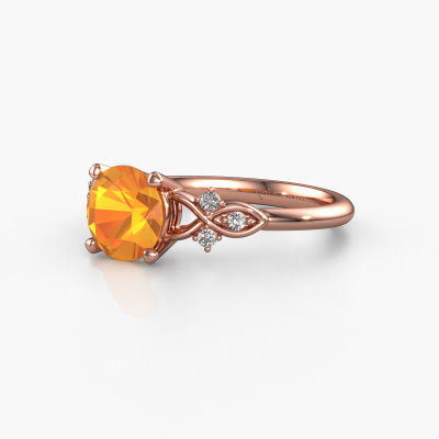 This 14 Carat rose gold ring is called Azra RND and is set with citrin. Do you keep up with the latest fashion trends? Do you want a unique engagement ring that matches your lifestyle? This tasteful engagement ring is an extraordinary ring which can be custom-made to fit your or her personal style. This fantasy rose gold engagement ring is set with citrin. Our citrin are carefully selected for this specific ring in order to create the best effect. Our expert goldsmith will create your ring in our own artisan studio where the citrin will be set with great care. The ring will then be polished to perfection. Nothing but the best for the love of your life! This jewel is made with passion and love by one of our master goldsmiths.By using our modern techniques, we can design and customize the finest quality jewels with the utmost care for you. Our engagement rings are always priced 30 percent lower than other jewellers. We make engagement rings to order so we don't have to maintain a large stock. If you have a certain budget, we are more than happy to advice you accordingly.Different styles of new rings are made daily by our team. Perhaps you have found a pavé solitaire engagement ring somewhere. One you would like to give to your loved one. Please feel free to share your thoughts and design with our jewel designers. We would love to turn your design into a fantasy engagement ring. You can follow the development of your ring design because we use very detailed 3D drawings. On top of that, you can order a dummy of the design. A dummy is a plastic ring, which can be shaped according your ring design. You can try it on and check if the engagement ring is up to standard. We will gladly send you a non-binding offer, based on a fair price/ quality ratio. The offer will baffle you, considering the quality of the ring and gemstones.To make it easier for you, we offer a 30 day return policy. Check our terms and conditions.
