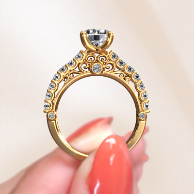 This 14 Carat gold ring is called Shaunda and is set with 2.00 crt diamond. For you, there is only one person in your life who stands out in a crowd. Only one that makes your heart skip a beat. A true gem! She, above all others, deserves a special gift. A unique customized jewel made in her honour. We believe this ring is perfect for your special moment. Each detail of this exclusive gold pavé solitaire engagement ring is selected by hand, crafted and polished by our expert goldsmith in our own artisan studio. We strive to achieve the perfect design and composition of the ring, so it enhances the unique features of our diamonds, and lets them shine even brighter. It takes a lot of precision to make but in the end it pays off because of the sheer beauty of the ring. And that is our main goal. It's what gets us excited. The great thing about our online tool is, that you can design your own jewellery into a unique, personalized piece. This unique special engagement ring is created with the precious metal combination of gold and gold. But of course you are completely free to select other colours. Each piece of jewellery is made to shine bright around your finger. Each jewel is hand made with love by our goldsmiths.By using a combination of the latest modern techniques, combined with ancient crafting, we can make all our engagement rings in our own studio. Each jewel is made to order. This is advantageous because we can offer you a price you won't find anywhere else.Our designers and goldsmiths work together each day, creating new jewels. Perhaps you have found a nice vintage engagement ring somewhere, which can be used to customize your unique ring. Please feel free to contact us. We will make you an offer, based on a fair price/ quality ratio, which will amaze you.To make it easier for you, we offer a 30 day return policy. Check our terms and conditions.