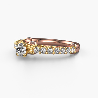 This 14 Carat rose gold ring is called Shaunda and is set with 0.80 crt diamond. For you, there is only one person in your life who stands out in a crowd. Only one that makes your heart skip a beat. A true gem! She, above all others, deserves a special gift. A unique customized jewel made in her honour. We believe this ring is perfect for your special moment. Each detail of this exclusive rose gold pavé solitaire engagement ring is selected by hand, crafted and polished by our expert goldsmith in our own artisan studio. We strive to achieve the perfect design and composition of the ring, so it enhances the unique features of our diamonds, and lets them shine even brighter. It takes a lot of precision to make but in the end it pays off because of the sheer beauty of the ring. And that is our main goal. It's what gets us excited. The great thing about our online tool is, that you can design your own jewellery into a unique, personalized piece. This unique special engagement ring is created with the precious metal combination of rose gold and gold. But of course you are completely free to select other colours. Each piece of jewellery is made to shine bright around your finger. Each jewel is hand made with love by our goldsmiths.By using a combination of the latest modern techniques, combined with ancient crafting, we can make all our engagement rings in our own studio. Each jewel is made to order. This is advantageous because we can offer you a price you won't find anywhere else.Our designers and goldsmiths work together each day, creating new jewels. Perhaps you have found a nice vintage engagement ring somewhere, which can be used to customize your unique ring. Please feel free to contact us. We will make you an offer, based on a fair price/ quality ratio, which will amaze you.To make it easier for you, we offer a 30 day return policy. Check our terms and conditions.