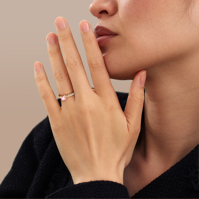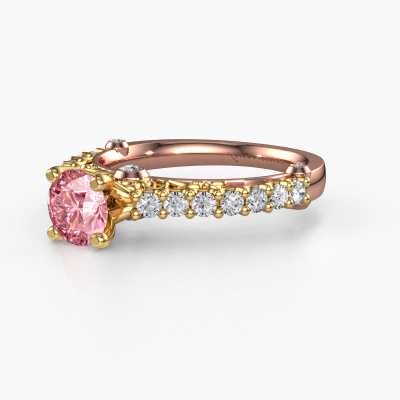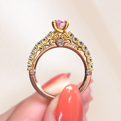 This 14 Carat rose gold ring is called Shaunda and is set with 6 mm pink lab grown diamond. For you, there is only one person in your life who stands out in a crowd. Only one that makes your heart skip a beat. A true gem! She, above all others, deserves a special gift. A unique customized jewel made in her honour. We believe this ring is perfect for your special moment. Each detail of this exclusive rose gold pavé solitaire engagement ring is selected by hand, crafted and polished by our expert goldsmith in our own artisan studio. We strive to achieve the perfect design and composition of the ring, so it enhances the unique features of our pink lab grown diamonds, and lets them shine even brighter. It takes a lot of precision to make but in the end it pays off because of the sheer beauty of the ring. And that is our main goal. It's what gets us excited. The great thing about our online tool is, that you can design your own jewellery into a unique, personalized piece. This unique special engagement ring is created with the precious metal combination of rose gold and gold. But of course you are completely free to select other colours. Each piece of jewellery is made to shine bright around your finger. Each jewel is hand made with love by our goldsmiths.By using a combination of the latest modern techniques, combined with ancient crafting, we can make all our engagement rings in our own studio. Each jewel is made to order. This is advantageous because we can offer you a price you won't find anywhere else.Our designers and goldsmiths work together each day, creating new jewels. Perhaps you have found a nice vintage engagement ring somewhere, which can be used to customize your unique ring. Please feel free to contact us. We will make you an offer, based on a fair price/ quality ratio, which will amaze you.To make it easier for you, we offer a 30 day return policy. Check our terms and conditions.