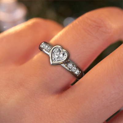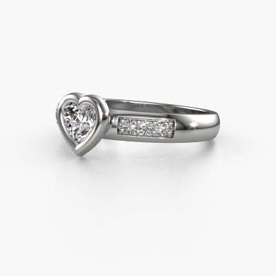 This 14 Carat white gold ring is called Lieke Heart and is set with diamond. Do you keep up with the latest fashion trends? Do you want a unique engagement ring that matches your lifestyle? This hearts engagement ring is an extraordinary ring which can be custom-made to fit your or her personal style. This trendy white gold engagement ring is set with diamond. Our diamonds are carefully selected for this specific ring in order to create the best effect. Our expert goldsmith will create your ring in our own artisan studio where the diamond will be set with great care. The ring will then be polished to perfection. Nothing but the best for the love of your life! This jewel is unique in every way! Simply customize to your likingAfter receiving your order, our goldsmiths will passionately start the creative process of making your engagement ring in our own studio. Because we don't have a big stockpile, these costs will not be passed on to you. Our pricing is proof of that! We offer top quality jewels at lowest price, guaranteed.Different styles of new rings are made daily by our team. Perhaps you have found a pavé solitaire engagement ring somewhere. One you would like to give to your loved one. Please feel free to share your thoughts and design with our jewel designers. We would love to turn your design into a trendy engagement ring. You can follow the development of your ring design because we use very detailed 3D drawings. On top of that, you can order a dummy of the design. A dummy is a plastic ring, which can be shaped according your ring design. You can try it on and check if the engagement ring is up to standard. We will gladly send you a non-binding offer, based on a fair price/ quality ratio. The offer will baffle you, considering the quality of the ring and gemstones.To make it easier for you, we offer a 30 day return policy. Check our terms and conditions.