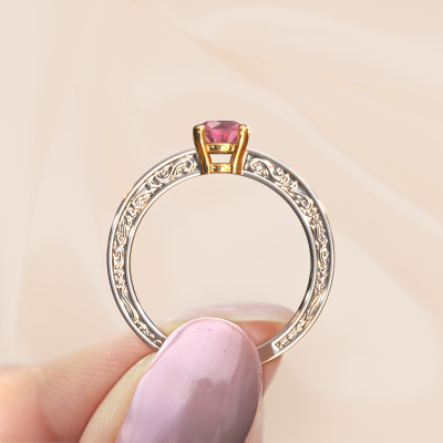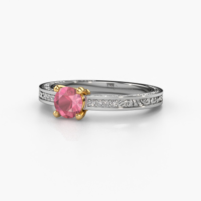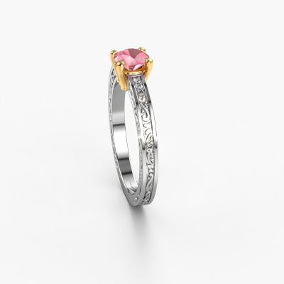 This 14 Carat white gold ring is called Claudette 2 and is set with 5 mm tourmaline pink. Is your girlfriend hooked on vintage? Then this white gold filigree engagement ring will surely match her style perfectly. A trendy ring with just a hint of Celtic adornment. A truly stunning, romantic design! Especially when you customize your ring to your own liking. This Celtic pavé solitaire engagement ring is set with stunning tourmaline pink. As you can see, you are the boss in selecting a gemstone which matches the style of your girlfriend best. Each gemstone is carefully selected by our merchants whom are spread throughout the world. Nothing but the best gems for our expert goldsmith. After all, it is his crowning glory! Each jewel is made just for you by our master goldsmiths in our own studio.After receiving your order, our goldsmiths will start the creative process of making your Claudette 2 engagement ring. We don't keep stock. This is advantageous because these costs will not be passed on to you. Therefore, we can offer jewellery at exceptionally low prices.Do you have a specific ring in mind? One you came across somewhere. Please feel free to tell us your wishes and we will turn your design into a unique engagement ring. You can follow the development of your ring design because we use 3D drawings. This gives you a realistic preview of your design. We will gladly send you a non-binding offer, based on a fair price/ quality ratio. It will amaze you.To make it easier for you, we offer a 30 day return policy. Check our terms and conditions.