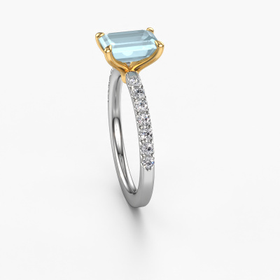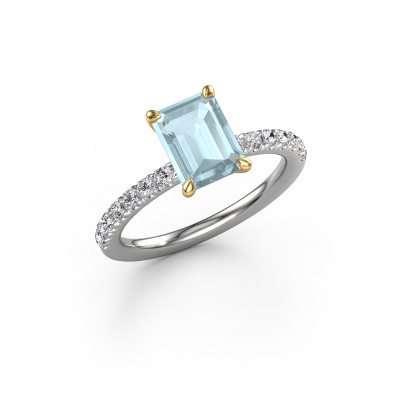 The ring shown above is called the Crystal EME 2, we call this a solitaire ring because it contains a single gemstone. The engagement ring is made in 14 Carat white gold and has a emerald cut aquamarine of 8x6 mm. This exclusive white gold solitaire ring with exquisite emerald cut aquamarine is a beautiful engagement ring. The open prong setting allows light to strike the gemstone from various angles. The ring also stands out because of the high positioning of the gemstone. Because diamonds symbolize true love and purity, they make the perfect gift for the love of your life. The symbol of eternal love is the centerpiece of this solitaire ring. Like a diamond, all other types of precious metal have their own attributed symbolic meaning. You can compile the pavé solitaire engagement ring yourself in various precious metal combinations. This one has the combination of 14 Carat white gold with gold. Each piece of jewelry is made just for you by our master goldsmiths in our own studio.By using a combination of the latest modern techniques, combined with ancient crafting, we can make all our engagement rings in our own studio. Each jewel is made to order. This is advantageous because we can offer you a price you won't find anywhere else.Our team adds new designs to our online collection daily. Our designers and goldsmiths work together in creating the best design. We strive to offer a diverse collection of jewels. Perhaps you have a specific jewel design in mind. One you came across somewhere. Please contact us for a free consultation. We will make you an offer, based on a fair price/ quality ratio, that will baffle you.To make it easier for you, we offer a 30 day return policy. Check our terms and conditions.