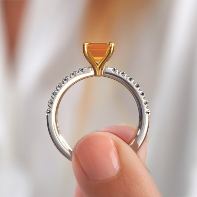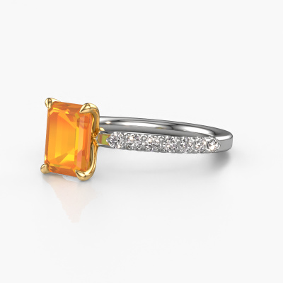 The ring shown above is called the Crystal EME 2, we call this a solitaire ring because it contains a single gemstone. The engagement ring is made in 14 Carat white gold and has a emerald cut citrin of 8x6 mm. This exclusive white gold solitaire ring with exquisite emerald cut citrin is a beautiful engagement ring. The open prong setting allows light to strike the gemstone from various angles. The ring also stands out because of the high positioning of the gemstone. Because diamonds symbolize true love and purity, they make the perfect gift for the love of your life. The symbol of eternal love is the centerpiece of this solitaire ring. Like a diamond, all other types of precious metal have their own attributed symbolic meaning. You can compile the pavé solitaire engagement ring yourself in various precious metal combinations. This one has the combination of 14 Carat white gold with gold. Each piece of jewelry is made just for you by our master goldsmiths in our own studio.By using a combination of the latest modern techniques, combined with ancient crafting, we can make all our engagement rings in our own studio. Each jewel is made to order. This is advantageous because we can offer you a price you won't find anywhere else.Our team adds new designs to our online collection daily. Our designers and goldsmiths work together in creating the best design. We strive to offer a diverse collection of jewels. Perhaps you have a specific jewel design in mind. One you came across somewhere. Please contact us for a free consultation. We will make you an offer, based on a fair price/ quality ratio, that will baffle you.To make it easier for you, we offer a 30 day return policy. Check our terms and conditions.