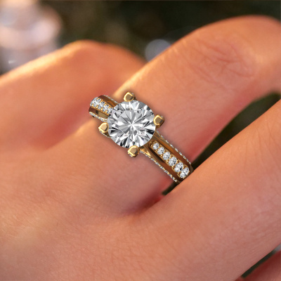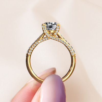 This 14 Carat gold ring is called Mia 3 and is set with 1.926 crt lab grown diamond. This exclusive gold pavé solitaire engagement ring is a true work of art! The ornaments are crafted with a lot of patience and great passion. In order to create this ring with great precision, this craft requires a keen eye and skilful hand. A challenge which ignites a fire in our expert goldsmith. The exquisite lab-grown diamonds are set in a special way so they stand out even more. This gives the ring an even more glamorous appearance. The shiny engagement ring is actually unique on its own because of the gemstones which we carefully select especially for this ring. On top of that you select the precious metals which will be used to create a unique ring for the most extraordinary woman in your life! This jewel is unique in every way! Simply customize to your likingAre you on a budget? Please feel free to contact us, so we can go discuss your options. We offer our engagement rings at guaranteed best price, because we make them to order. You won't find such a price anywhere else!Our team adds new designs to our online collection daily. Our designers and goldsmiths work together in creating the best design. We strive to offer a diverse collection of jewels. Perhaps you have a specific jewel design in mind. One you came across somewhere. Please contact us for a free consultation. We will make you an offer, based on a fair price/ quality ratio, that will baffle you.To make it easier for you, we offer a 30 day return policy. Check our terms and conditions.