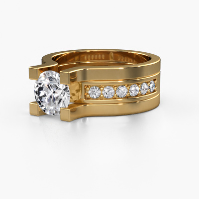 This 14 Carat gold ring is called Myrthe and is set with 1.860 crt lab grown diamond. This exclusive gold pavé solitaire engagement ring is a true work of art! The ornaments are crafted with a lot of patience and great passion. In order to create this ring with great precision, this craft requires a keen eye and skilful hand. A challenge which ignites a fire in our expert goldsmith. The exquisite lab-grown diamonds are set in a special way so they stand out even more. This gives the ring an even more glamorous appearance. The graceful engagement ring is actually unique on its own because of the gemstones which we carefully select especially for this ring. On top of that you select the precious metals which will be used to create a unique ring for the most extraordinary woman in your life! This jewel is made just for you, with attention to detail and design.After receiving your order, our goldsmiths will start the creative process of making your Myrthe engagement ring. We don't keep stock. This is advantageous because these costs will not be passed on to you. Therefore, we can offer jewellery at exceptionally low prices.Our designers and goldsmiths work together each day, creating new jewels. Perhaps you have found a nice modern engagement ring somewhere, which can be used to customize your unique ring. Please feel free to contact us. We will make you an offer, based on a fair price/ quality ratio, which will amaze you.To make it easier for you, we offer a 30 day return policy. Check our terms and conditions.