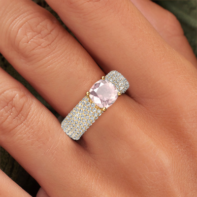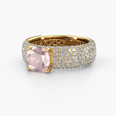 This 14 Carat gold ring is called Darcy and is set with 7 mm morganite champagne. This exclusive gold pavé solitaire Engagement ring is a true work of art! The ornaments are crafted with a lot of patience and great passion. In order to create this ring with great precision, this craft requires a keen eye and skilful hand. A challenge which ignites a fire in our expert goldsmith. The exquisite morganite champagne are set in a special way so they stand out even more. This gives the ring an even more glamorous appearance. The pavé Engagement ring is actually unique on its own because of the gemstones which we carefully select especially for this ring. On top of that you select the precious metals which will be used to create a unique ring for the most extraordinary woman in your life! This jewel is unique in every way! Simply customize to your likingBecause we design and deliver our own rings, we can offer you a Engagement ring at a price you won't find anywhere else. A ring is made to order, which helps prevent excess supplies, so we can make you a great price offer. We understand it feels risky, buying your Engagement ring online, but we will gladly assist in the designing process, taking your budget into consideration.Different styles of new rings are made daily by our team. Perhaps you have found a pavé solitaire Engagement ring somewhere. One you would like to give to your loved one. Please feel free to share your thoughts and design with our jewel designers. We would love to turn your design into a exclusive Engagement ring. You can follow the development of your ring design because we use very detailed 3D drawings. On top of that, you can order a dummy of the design. A dummy is a plastic ring, which can be shaped according your ring design. You can try it on and check if the Engagement ring is up to standard. We will gladly send you a non-binding offer, based on a fair price/ quality ratio. The offer will baffle you, considering the quality of the ring and gemstones.To make it easier for you, we offer a 30 day return policy. Check our terms and conditions.