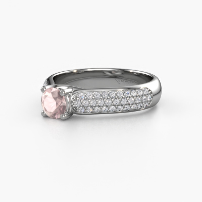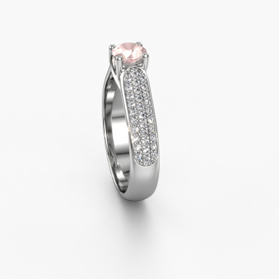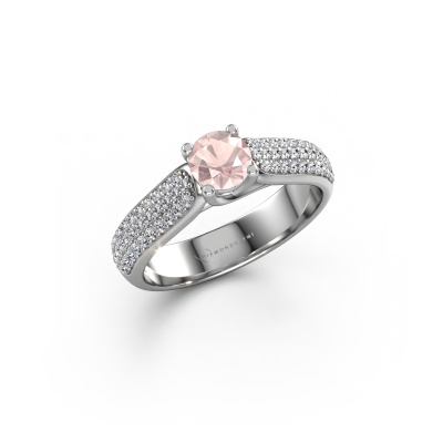 The ring shown above is called the Leoness. We call this type of ring a pavé solitaire ring. The centre gemstone is surrounded by smaller sized stones. This platinum version is set with a 5 mm round morganite champagne centre stone, embraced by smaller diamonds. What makes this classic platinum pavé solitaire ring special is the setting of the smaller gems surrounding the centre morganite champagne, which are shaped like a beautiful flower. The surrounding pavé solitaire of stones frame the middle centre stone in such a way to make it appear bigger. This type of engagement ring is also called a flower ring. It is very important that the smaller diamonds are positioned identically so there is no interference of light but perfect unity instead. Our skilled Goldsmiths get the job done. Each individual stone is carefully set by hand. During manufacturing, light fall is constantly monitored to make sure the special pavé solitaire effect is still visible. In the end you get the perfect engagement ring with a radiant morganite champagne gemstone centrepiece. You can imagine the effect of a ring of such significance when you give tot the love of your life on her special day to shine. This jewel is unique in every way! Simply customize to your liking,By using our modern techniques, we can design and customize the finest quality jewels with the utmost care for you. Our engagement rings are always priced 30 percent lower than other jewellers. We make engagement rings to order so we don't have to maintain a large stock. If you have a certain budget, we are more than happy to advice you accordingly.Have you found a specific engagement ring somewhere which you would like to give to your loved one? Please feel free to express your wishes to our jewel designers because we would be honoured to turn your design into a classic engagement ring. You can follow the development of your ring design because we use 3D drawings. This gives you a realistic preview of how your design will look. You can also preorder a dummy. A dummy is a plastic ring, which can be shaped according your ring design. You can try it on and check if its width and size are suitable for you. We will gladly send you a non-binding offer, based on a fair price/ quality ratio. It will amaze you, considering the quality of the ring and gemstones.To make it easier for you, we offer a 30 day return policy. Check our terms and conditions.