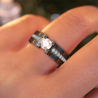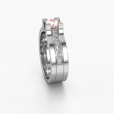 This platinum ring is called Myrthe and is set with 5 mm morganite champagne. This exclusive platinum pavé solitaire engagement ring is a true work of art! The ornaments are crafted with a lot of patience and great passion. In order to create this ring with great precision, this craft requires a keen eye and skilful hand. A challenge which ignites a fire in our expert goldsmith. The exquisite morganite champagne are set in a special way so they stand out even more. This gives the ring an even more glamorous appearance. The graceful engagement ring is actually unique on its own because of the gemstones which we carefully select especially for this ring. On top of that you select the precious metals which will be used to create a unique ring for the most extraordinary woman in your life! This jewel is made just for you, with attention to detail and design.After receiving your order, our goldsmiths will start the creative process of making your Myrthe engagement ring. We don't keep stock. This is advantageous because these costs will not be passed on to you. Therefore, we can offer jewellery at exceptionally low prices.Our designers and goldsmiths work together each day, creating new jewels. Perhaps you have found a nice modern engagement ring somewhere, which can be used to customize your unique ring. Please feel free to contact us. We will make you an offer, based on a fair price/ quality ratio, which will amaze you.To make it easier for you, we offer a 30 day return policy. Check our terms and conditions.