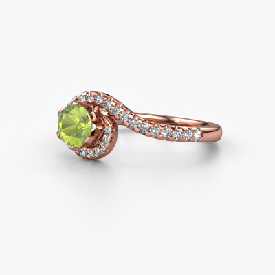 This 14 Carat rose gold ring is called Elli and is set with 5 mm peridot. This exclusive rose gold pavé solitaire engagement ring is a true work of art! The ornaments are crafted with a lot of patience and great passion. In order to create this ring with great precision, this craft requires a keen eye and skilful hand. A challenge which ignites a fire in our expert goldsmith. The exquisite peridot are set in a special way so they stand out even more. This gives the ring an even more glamorous appearance. The graceful engagement ring is actually unique on its own because of the gemstones which we carefully select especially for this ring. On top of that you select the precious metals which will be used to create a unique ring for the most extraordinary woman in your life! This jewel is made just for you, with attention to detail and design.After receiving your order, our goldsmiths will passionately start the creative process of making your engagement ring in our own studio. Because we don't have a big stockpile, these costs will not be passed on to you. Our pricing is proof of that! We offer top quality jewels at lowest price, guaranteed.Our designers and goldsmiths work together each day, creating new jewels. Perhaps you have found a nice exclusive engagement ring somewhere, which can be used to customize your unique ring. Please feel free to contact us. We will make you an offer, based on a fair price/ quality ratio, which will amaze you.To make it easier for you, we offer a 30 day return policy. Check our terms and conditions.