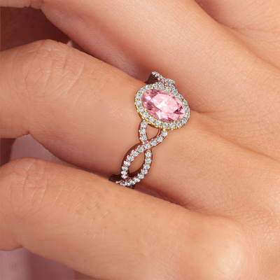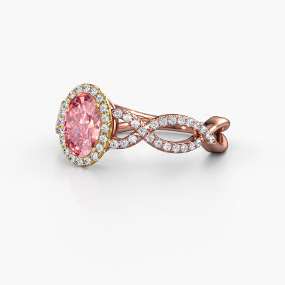 This 14 Carat rose gold ring is called Dionne ovl and is set with 7x5 mm pink lab grown diamond. This exclusive rose gold pavé solitaire engagement ring is a true work of art! The ornaments are crafted with a lot of patience and great passion. In order to create this ring with great precision, this craft requires a keen eye and skilful hand. A challenge which ignites a fire in our expert goldsmith. The exquisite pink lab grown diamonds are set in a special way so they stand out even more. This gives the ring an even more glamorous appearance. The twisted engagement ring is actually unique on its own because of the gemstones which we carefully select especially for this ring. On top of that you select the precious metals which will be used to create a unique ring for the most extraordinary woman in your life! This jewel is unique in every way! Simply customize to your likingAfter receiving your order, our goldsmiths will start the creative process of making your Dionne ovl engagement ring. We don't keep stock. This is advantageous because these costs will not be passed on to you. Therefore, we can offer jewellery at exceptionally low prices.Different styles of new rings are made daily by our team. Perhaps you have found a pavé solitaire engagement ring somewhere. One you would like to give to your loved one. Please feel free to share your thoughts and design with our jewel designers. We would love to turn your design into a exclusive engagement ring. You can follow the development of your ring design because we use very detailed 3D drawings. On top of that, you can order a dummy of the design. A dummy is a plastic ring, which can be shaped according your ring design. You can try it on and check if the engagement ring is up to standard. We will gladly send you a non-binding offer, based on a fair price/ quality ratio. The offer will baffle you, considering the quality of the ring and gemstones.To make it easier for you, we offer a 30 day return policy. Check our terms and conditions.