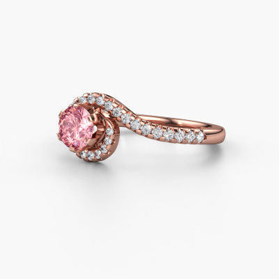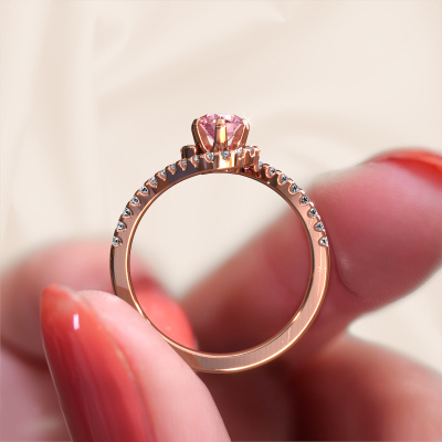 This 14 Carat rose gold ring is called Elli and is set with 5 mm pink lab grown diamond. This exclusive rose gold pavé solitaire engagement ring is a true work of art! The ornaments are crafted with a lot of patience and great passion. In order to create this ring with great precision, this craft requires a keen eye and skilful hand. A challenge which ignites a fire in our expert goldsmith. The exquisite pink lab grown diamonds are set in a special way so they stand out even more. This gives the ring an even more glamorous appearance. The graceful engagement ring is actually unique on its own because of the gemstones which we carefully select especially for this ring. On top of that you select the precious metals which will be used to create a unique ring for the most extraordinary woman in your life! This jewel is made just for you, with attention to detail and design.After receiving your order, our goldsmiths will passionately start the creative process of making your engagement ring in our own studio. Because we don't have a big stockpile, these costs will not be passed on to you. Our pricing is proof of that! We offer top quality jewels at lowest price, guaranteed.Our designers and goldsmiths work together each day, creating new jewels. Perhaps you have found a nice exclusive engagement ring somewhere, which can be used to customize your unique ring. Please feel free to contact us. We will make you an offer, based on a fair price/ quality ratio, which will amaze you.To make it easier for you, we offer a 30 day return policy. Check our terms and conditions.