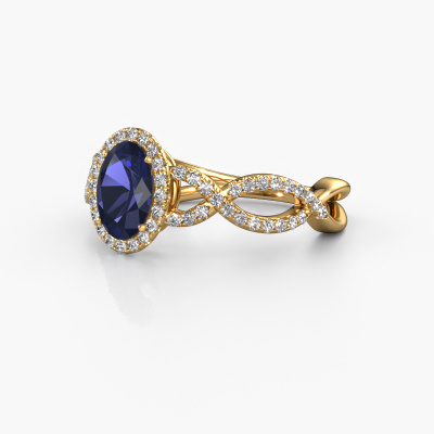 This 14 Carat gold ring is called Dionne ovl and is set with 7x5 mm sapphire. This exclusive gold pavé solitaire engagement ring is a true work of art! The ornaments are crafted with a lot of patience and great passion. In order to create this ring with great precision, this craft requires a keen eye and skilful hand. A challenge which ignites a fire in our expert goldsmith. The exquisite sapphire are set in a special way so they stand out even more. This gives the ring an even more glamorous appearance. The twisted engagement ring is actually unique on its own because of the gemstones which we carefully select especially for this ring. On top of that you select the precious metals which will be used to create a unique ring for the most extraordinary woman in your life! This jewel is unique in every way! Simply customize to your likingAfter receiving your order, our goldsmiths will start the creative process of making your Dionne ovl engagement ring. We don't keep stock. This is advantageous because these costs will not be passed on to you. Therefore, we can offer jewellery at exceptionally low prices.Different styles of new rings are made daily by our team. Perhaps you have found a pavé solitaire engagement ring somewhere. One you would like to give to your loved one. Please feel free to share your thoughts and design with our jewel designers. We would love to turn your design into a exclusive engagement ring. You can follow the development of your ring design because we use very detailed 3D drawings. On top of that, you can order a dummy of the design. A dummy is a plastic ring, which can be shaped according your ring design. You can try it on and check if the engagement ring is up to standard. We will gladly send you a non-binding offer, based on a fair price/ quality ratio. The offer will baffle you, considering the quality of the ring and gemstones.To make it easier for you, we offer a 30 day return policy. Check our terms and conditions.