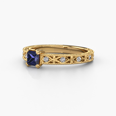 This 14 Carat gold ring is called Ardella and is set with 4 mm sapphire. An extraordinary gold vintage ring. One that will surely make the love of your life shine like a diamond! That is what we hope to achieve. This vintage engagement ring is set with exquisite sapphire. Whichever gemstone you choose from our selection, is up to you. The gemstone is selected with great care because we believe your filigree engagement ring must be adorned with nothing but the most beautiful gemstone. Wouldn't you agree? Our expert goldsmith will design your ring in our own crafting studio, where the sapphire will be set with great precision. The ring will then be polished till it shines perfectly. Nothing but the best for the love of your life! This jewel is made just for you by our master goldsmiths in our own studio.After receiving your order, our goldsmiths will passionately start the creative process of making your engagement ring in our own studio. Because we don't have a big stockpile, these costs will not be passed on to you. Our pricing is proof of that! We offer top quality jewels at lowest price, guaranteed.Different styles of new rings are made daily by our team. Perhaps you have found a pavé solitaire engagement ring somewhere. One you would like to give to your loved one. Please feel free to share your thoughts and design with our jewel designers. We would love to turn your design into a vintage engagement ring. You can follow the development of your ring design because we use very detailed 3D drawings. On top of that, you can order a dummy of the design. A dummy is a plastic ring, which can be shaped according your ring design. You can try it on and check if the engagement ring is up to standard. We will gladly send you a non-binding offer, based on a fair price/ quality ratio. The offer will baffle you, considering the quality of the ring and gemstones.To make it easier for you, we offer a 30 day return policy. Check our terms and conditions.