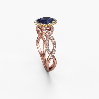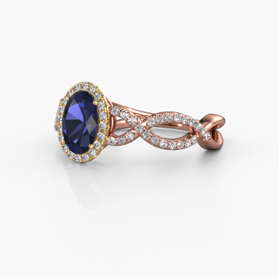 This 14 Carat rose gold ring is called Dionne ovl and is set with 7x5 mm sapphire. This exclusive rose gold pavé solitaire engagement ring is a true work of art! The ornaments are crafted with a lot of patience and great passion. In order to create this ring with great precision, this craft requires a keen eye and skilful hand. A challenge which ignites a fire in our expert goldsmith. The exquisite sapphire are set in a special way so they stand out even more. This gives the ring an even more glamorous appearance. The twisted engagement ring is actually unique on its own because of the gemstones which we carefully select especially for this ring. On top of that you select the precious metals which will be used to create a unique ring for the most extraordinary woman in your life! This jewel is unique in every way! Simply customize to your likingAfter receiving your order, our goldsmiths will start the creative process of making your Dionne ovl engagement ring. We don't keep stock. This is advantageous because these costs will not be passed on to you. Therefore, we can offer jewellery at exceptionally low prices.Different styles of new rings are made daily by our team. Perhaps you have found a pavé solitaire engagement ring somewhere. One you would like to give to your loved one. Please feel free to share your thoughts and design with our jewel designers. We would love to turn your design into a exclusive engagement ring. You can follow the development of your ring design because we use very detailed 3D drawings. On top of that, you can order a dummy of the design. A dummy is a plastic ring, which can be shaped according your ring design. You can try it on and check if the engagement ring is up to standard. We will gladly send you a non-binding offer, based on a fair price/ quality ratio. The offer will baffle you, considering the quality of the ring and gemstones.To make it easier for you, we offer a 30 day return policy. Check our terms and conditions.