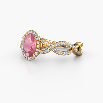 This 14 Carat gold ring is called Dionne ovl and is set with 7x5 mm tourmaline pink. This exclusive gold pavé solitaire engagement ring is a true work of art! The ornaments are crafted with a lot of patience and great passion. In order to create this ring with great precision, this craft requires a keen eye and skilful hand. A challenge which ignites a fire in our expert goldsmith. The exquisite tourmaline pink are set in a special way so they stand out even more. This gives the ring an even more glamorous appearance. The twisted engagement ring is actually unique on its own because of the gemstones which we carefully select especially for this ring. On top of that you select the precious metals which will be used to create a unique ring for the most extraordinary woman in your life! This jewel is unique in every way! Simply customize to your likingAfter receiving your order, our goldsmiths will start the creative process of making your Dionne ovl engagement ring. We don't keep stock. This is advantageous because these costs will not be passed on to you. Therefore, we can offer jewellery at exceptionally low prices.Different styles of new rings are made daily by our team. Perhaps you have found a pavé solitaire engagement ring somewhere. One you would like to give to your loved one. Please feel free to share your thoughts and design with our jewel designers. We would love to turn your design into a exclusive engagement ring. You can follow the development of your ring design because we use very detailed 3D drawings. On top of that, you can order a dummy of the design. A dummy is a plastic ring, which can be shaped according your ring design. You can try it on and check if the engagement ring is up to standard. We will gladly send you a non-binding offer, based on a fair price/ quality ratio. The offer will baffle you, considering the quality of the ring and gemstones.To make it easier for you, we offer a 30 day return policy. Check our terms and conditions.