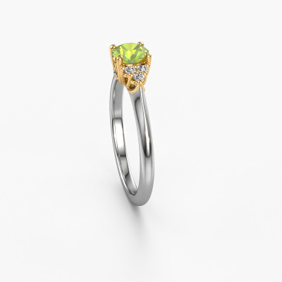 This 14 Carat white gold ring is called Felipa RND and is set with 5 mm peridot. What is it that makes your relationship unique? What is it about her that makes you want to bend down on one knee? The unique bond between the two of you is emphasized by an equally unique ring. A one of a kind ajour 3-stone engagement ring made especially for her. That is why this fantasy ring fits her like a glove. Each specific detail of this ajour white gold peridot set engagement ring is hand-picked, crafted and polished by our expert goldsmith. The result is an exquisite ring, unique and perfectly crafted to perfection. That is what our expert Goldsmiths strive for. This jewel is made just for you by our master goldsmiths in our own studio.After receiving your order, our goldsmiths will passionately start the creative process of making your engagement ring in our own studio. Because we don't have a big stockpile, these costs will not be passed on to you. Our pricing is proof of that! We offer top quality jewels at lowest price, guaranteed.Have you found a specific engagement ring somewhere which you would like to give to your loved one? Please feel free to express your wishes to our jewel designers because we would be honoured to turn your design into a fantasy engagement ring. You can follow the development of your ring design because we use 3D drawings. This gives you a realistic preview of how your design will look. You can also preorder a dummy. A dummy is a plastic ring, which can be shaped according your ring design. You can try it on and check if its width and size are suitable for you. We will gladly send you a non-binding offer, based on a fair price/ quality ratio. It will amaze you, considering the quality of the ring and gemstones.To make it easier for you, we offer a 30 day return policy. Check our terms and conditions.