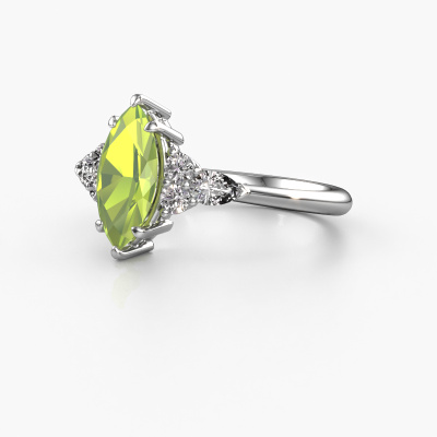 This platinum ring is called Melani MRQ and is set with 11x5.5 mm peridot. What is it that makes your relationship unique? What is it about her that makes you want to bend down on one knee? The unique bond between the two of you is emphasized by an equally unique ring. A one of a kind graceful cluster engagement ring made especially for her. That is why this trendy ring fits her like a glove. Each specific detail of this graceful platinum peridot set engagement ring is hand-picked, crafted and polished by our expert goldsmith. The result is an exquisite ring, unique and perfectly crafted to perfection. That is what our expert Goldsmiths strive for. This jewel is made just for you, with attention to detail and design.After receiving your order, our goldsmiths will passionately start the creative process of making your engagement ring in our own studio. Because we don't have a big stockpile, these costs will not be passed on to you. Our pricing is proof of that! We offer top quality jewels at lowest price, guaranteed.Do you have a specific ring in mind? One you came across somewhere. Please feel free to tell us your wishes and we will turn your design into a unique engagement ring. You can follow the development of your ring design because we use 3D drawings. This gives you a realistic preview of your design. We will gladly send you a non-binding offer, based on a fair price/ quality ratio. It will amaze you.To make it easier for you, we offer a 30 day return policy. Check our terms and conditions.