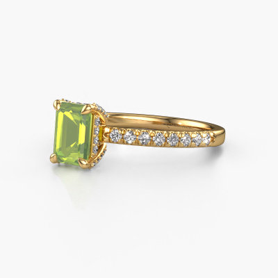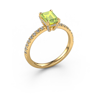 The ring shown above is called the Saskia eme 1, we call this a solitaire ring because it contains a single gemstone. The engagement ring is made in 14 Carat gold and has a emerald cut peridot of 7x5 mm. The cool thing about our configurator is that you can compile your own piece of jewellery, into a completely personalized one. This solitaire ring is crafted in the precious metals gold with gold, but of course you are free to pick your own colours. Each piece of jewellery is made with passion and love by one of our master goldsmiths.The solitaire ring is a special type of engagement ring. Its open prong setting allows light to strike the gemstone from various angles. This exclusive engagement ring is a stunning eye-catcher because of the high positioning of the gemstone. In order for you to commemorate your proposal with a unique ring, we carefully adorn this solitaire ring by hand. The love of your life deserves nothing but the best. After receiving your order, our goldsmiths will passionately start the creative process of making your engagement ring in our own studio. Because we don't have a big stockpile, these costs will not be passed on to you. Our pricing is proof of that! We offer top quality jewels at lowest price, guaranteed.Our team adds new designs to our online collection daily. Our designers and goldsmiths work together in creating the best design. We strive to offer a diverse collection of jewels. Perhaps you have a specific jewel design in mind. One you came across somewhere. Please contact us for a free consultation. We will make you an offer, based on a fair price/ quality ratio, that will baffle you.To make it easier for you, we offer a 30 day return policy. Check our terms and conditions.