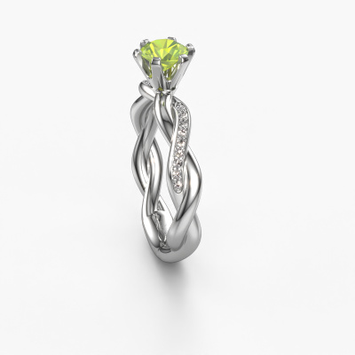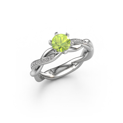 In your eyes, no one else compares to her. She is one in a million, unlike anyone else and pure? These qualities are emphasized perfectly by our fantasy platinum solitaire peridot ring. This peridot is carefully selected by our keen artisan goldsmiths. It equals the unique qualities of the love of your life. There is no better way to memorialize your proposal than this symbol of true love. The ring shown above is called the Page, we call this a solitaire ring because it contains a single gemstone. The engagement ring is made in platinum and has a round peridot of 5.4 mm. Each piece of jewellery is made with passion and love by one of our master goldsmiths.Are you on a budget? Please feel free to contact us, so we can go discuss your options. We offer our engagement rings at guaranteed best price, because we make them to order. You won't find such a price anywhere else!Do you have a specific ring in mind? One you came across somewhere. Please feel free to tell us your wishes and we will turn your design into a unique engagement ring. You can follow the development of your ring design because we use 3D drawings. This gives you a realistic preview of your design. We will gladly send you a non-binding offer, based on a fair price/ quality ratio. It will amaze you.To make it easier for you, we offer a 30 day return policy. Check our terms and conditions.