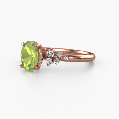 This 14 Carat rose gold ring is called Emma OVL and is set with peridot. How would you describe the style of the love of your life? Does she have a unique sense of style? This stunning sublime rose gold engagement ring can be custom-made to your own or her liking. Our peridot gemstones have been carefully selected because we believe your fantasy engagement ring must be adorned with nothing but the most beautiful gemstone. Don't you agree? This jewel is made by a team of passionate goldsmiths and jewel designers. This will make your crown jewel truly eye-catching.By using a combination of the latest modern techniques, combined with ancient crafting, we can make all our engagement rings in our own studio. Each jewel is made to order. This is advantageous because we can offer you a price you won't find anywhere else.Different styles of new rings are made daily by our team. Perhaps you have found a pavé solitaire engagement ring somewhere. One you would like to give to your loved one. Please feel free to share your thoughts and design with our jewel designers. We would love to turn your design into a fantasy engagement ring. You can follow the development of your ring design because we use very detailed 3D drawings. On top of that, you can order a dummy of the design. A dummy is a plastic ring, which can be shaped according your ring design. You can try it on and check if the engagement ring is up to standard. We will gladly send you a non-binding offer, based on a fair price/ quality ratio. The offer will baffle you, considering the quality of the ring and gemstones.To make it easier for you, we offer a 30 day return policy. Check our terms and conditions.