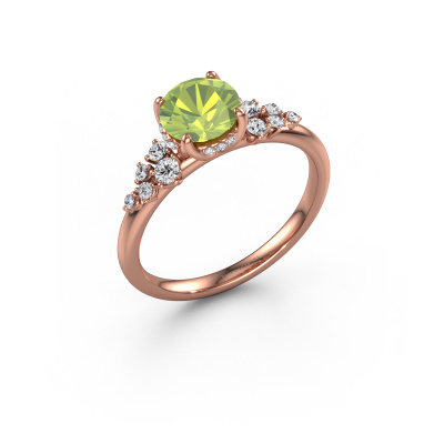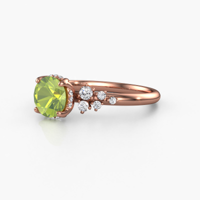 This 14 Carat rose gold ring is called Emma RND and is set with peridot. How would you describe the style of the love of your life? Does she have a unique sense of style? This stunning refined rose gold engagement ring can be custom-made to your own or her liking. Our peridot gemstones have been carefully selected because we believe your fantasy engagement ring must be adorned with nothing but the most beautiful gemstone. Don't you agree? This jewel is made just for you by our master goldsmiths in our own studio.By using our modern techniques, we can design and customize the finest quality jewels with the utmost care for you. Our engagement rings are always priced 30 percent lower than other jewellers. We make engagement rings to order so we don't have to maintain a large stock. If you have a certain budget, we are more than happy to advice you accordingly.Have you found a specific engagement ring somewhere which you would like to give to your loved one? Please feel free to express your wishes to our jewel designers because we would be honoured to turn your design into a fantasy engagement ring. You can follow the development of your ring design because we use 3D drawings. This gives you a realistic preview of how your design will look. You can also preorder a dummy. A dummy is a plastic ring, which can be shaped according your ring design. You can try it on and check if its width and size are suitable for you. We will gladly send you a non-binding offer, based on a fair price/ quality ratio. It will amaze you, considering the quality of the ring and gemstones.To make it easier for you, we offer a 30 day return policy. Check our terms and conditions.