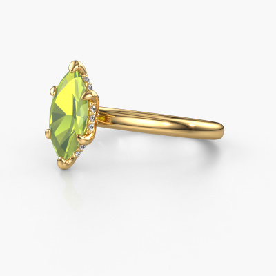 This 14 Carat gold ring is called Simone MRQ 2 and is set with 11x5.5 mm peridot. What is it that makes your relationship unique? What is it about her that makes you want to bend down on one knee? The unique bond between the two of you is emphasized by an equally unique ring. A one of a kind round solitaire engagement ring made especially for her. That is why this fantasy ring fits her like a glove. Each specific detail of this round gold peridot set engagement ring is hand-picked, crafted and polished by our expert goldsmith. The result is an exquisite ring, unique and perfectly crafted to perfection. That is what our expert Goldsmiths strive for. This jewel is made just for you by our master goldsmiths in our own studio.Because we design and deliver our own rings, we can offer you a engagement ring at a price you won't find anywhere else. A ring is made to order, which helps prevent excess supplies, so we can make you a great price offer. We understand it feels risky, buying your engagement ring online, but we will gladly assist in the designing process, taking your budget into consideration.Our designers and goldsmiths work together each day, creating new jewels. Perhaps you have found a nice fantasy engagement ring somewhere, which can be used to customize your unique ring. Please feel free to contact us. We will make you an offer, based on a fair price/ quality ratio, which will amaze you.To make it easier for you, we offer a 30 day return policy. Check our terms and conditions.