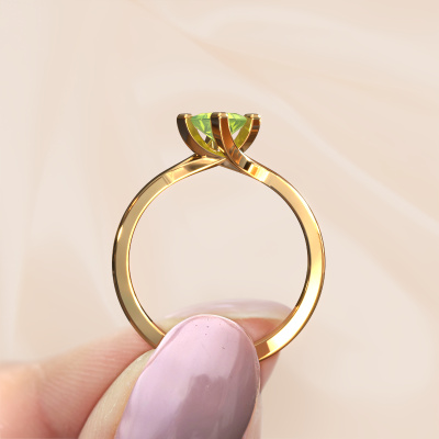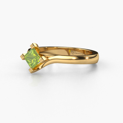In your eyes, no one else compares to her. She is one in a million, unlike anyone else and pure? These qualities are emphasized perfectly by our modern gold solitaire peridot ring. This peridot is carefully selected by our keen artisan goldsmiths. It equals the unique qualities of the love of your life. There is no better way to memorialize your proposal than this symbol of true love. The ring shown above is called the Dewi Square, we call this a solitaire ring because it contains a single gemstone. The Engagement ring is made in 14 Carat gold and has a princess peridot of 4 mm. Each piece of jewellery is made just for you by our master goldsmiths in our own studio.By using a combination of the latest modern techniques, combined with ancient crafting, we can make all our Engagement rings in our own studio. Each jewel is made to order. This is advantageous because we can offer you a price you won't find anywhere else.Our designers and goldsmiths work together each day, creating new jewels. Perhaps you have found a nice modern Engagement ring somewhere, which can be used to customize your unique ring. Please feel free to contact us. We will make you an offer, based on a fair price/ quality ratio, which will amaze you.To make it easier for you, we offer a 30 day return policy. Check our terms and conditions.