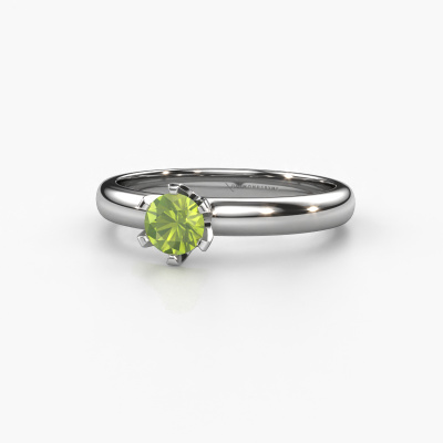 In your eyes, no one else compares to her. She is one in a million, unlike anyone else and pure? These qualities are emphasized perfectly by our modern platinum solitaire peridot ring. This peridot is carefully selected by our keen artisan goldsmiths. It equals the unique qualities of the love of your life. There is no better way to memorialize your proposal than this symbol of true love. The ring shown above is called the Lorretta, we call this a solitaire ring because it contains a single gemstone. The engagement ring is made in platinum and has a round peridot of 4.7 mm. Each piece of jewellery is made with passion and love by one of our master goldsmiths.By using a combination of the latest modern techniques, combined with ancient crafting, we can make all our engagement rings in our own studio. Each jewel is made to order. This is advantageous because we can offer you a price you won't find anywhere else.Our team adds new designs to our online collection daily. Our designers and goldsmiths work together in creating the best design. We strive to offer a diverse collection of jewels. Perhaps you have a specific jewel design in mind. One you came across somewhere. Please contact us for a free consultation. We will make you an offer, based on a fair price/ quality ratio, that will baffle you.To make it easier for you, we offer a 30 day return policy. Check our terms and conditions.