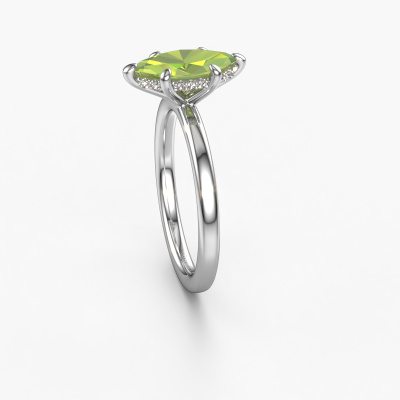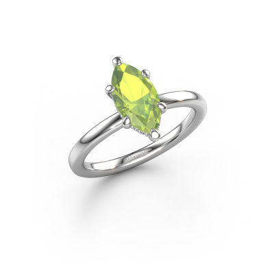 This 14 Carat white gold ring is called Simone MRQ 2 and is set with 11x5.5 mm peridot. What is it that makes your relationship unique? What is it about her that makes you want to bend down on one knee? The unique bond between the two of you is emphasized by an equally unique ring. A one of a kind round solitaire engagement ring made especially for her. That is why this fantasy ring fits her like a glove. Each specific detail of this round white gold peridot set engagement ring is hand-picked, crafted and polished by our expert goldsmith. The result is an exquisite ring, unique and perfectly crafted to perfection. That is what our expert Goldsmiths strive for. This jewel is made just for you by our master goldsmiths in our own studio.Because we design and deliver our own rings, we can offer you a engagement ring at a price you won't find anywhere else. A ring is made to order, which helps prevent excess supplies, so we can make you a great price offer. We understand it feels risky, buying your engagement ring online, but we will gladly assist in the designing process, taking your budget into consideration.Our designers and goldsmiths work together each day, creating new jewels. Perhaps you have found a nice fantasy engagement ring somewhere, which can be used to customize your unique ring. Please feel free to contact us. We will make you an offer, based on a fair price/ quality ratio, which will amaze you.To make it easier for you, we offer a 30 day return policy. Check our terms and conditions.