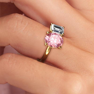 This 14 Carat gold ring is called Toi et Moi OVL-EME and is set with 9x7 mm pink lab grown diamond. What is it that makes your relationship unique? What is it about her that makes you want to bend down on one knee? The unique bond between the two of you is emphasized by an equally unique ring. A one of a kind charming 2 stone engagement ring made especially for her. That is why this exclusive ring fits her like a glove. Each specific detail of this charming gold pink lab grown diamond set engagement ring is hand-picked, crafted and polished by our expert goldsmith. The result is an exquisite ring, unique and perfectly crafted to perfection. That is what our expert Goldsmiths strive for. This jewel is made just for you, with attention to detail and design.After receiving your order, our goldsmiths will start the creative process of making your Toi et Moi OVL-EME engagement ring. We don't keep stock. This is advantageous because these costs will not be passed on to you. Therefore, we can offer jewellery at exceptionally low prices.Our team adds new designs to our online collection daily. Our designers and goldsmiths work together in creating the best design. We strive to offer a diverse collection of jewels. Perhaps you have a specific jewel design in mind. One you came across somewhere. Please contact us for a free consultation. We will make you an offer, based on a fair price/ quality ratio, that will baffle you.To make it easier for you, we offer a 30 day return policy. Check our terms and conditions.