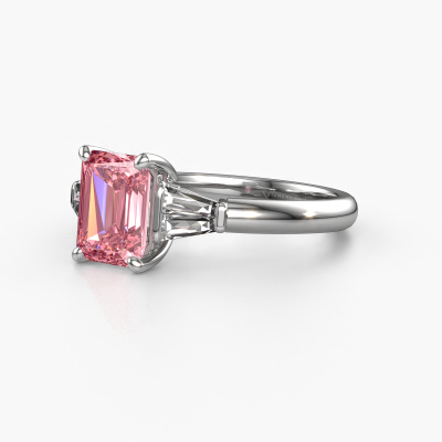 This platinum ring is called Kina EME and is set with pink lab grown diamond. How would you describe the style of the love of your life? Does she have a unique sense of style? This stunning special platinum engagement ring can be custom-made to your own or her liking. Our pink lab grown diamonds gemstones have been carefully selected because we believe your exclusive engagement ring must be adorned with nothing but the most beautiful gemstone. Don't you agree? This jewel is made by a team of passionate goldsmiths and jewel designers. This will make your crown jewel truly eye-catching.Are you on a budget? Please feel free to contact us, so we can go discuss your options. We offer our engagement rings at guaranteed best price, because we make them to order. You won't find such a price anywhere else!Have you found a specific engagement ring somewhere which you would like to give to your loved one? Please feel free to express your wishes to our jewel designers because we would be honoured to turn your design into a exclusive engagement ring. You can follow the development of your ring design because we use 3D drawings. This gives you a realistic preview of how your design will look. You can also preorder a dummy. A dummy is a plastic ring, which can be shaped according your ring design. You can try it on and check if its width and size are suitable for you. We will gladly send you a non-binding offer, based on a fair price/ quality ratio. It will amaze you, considering the quality of the ring and gemstones.To make it easier for you, we offer a 30 day return policy. Check our terms and conditions.
